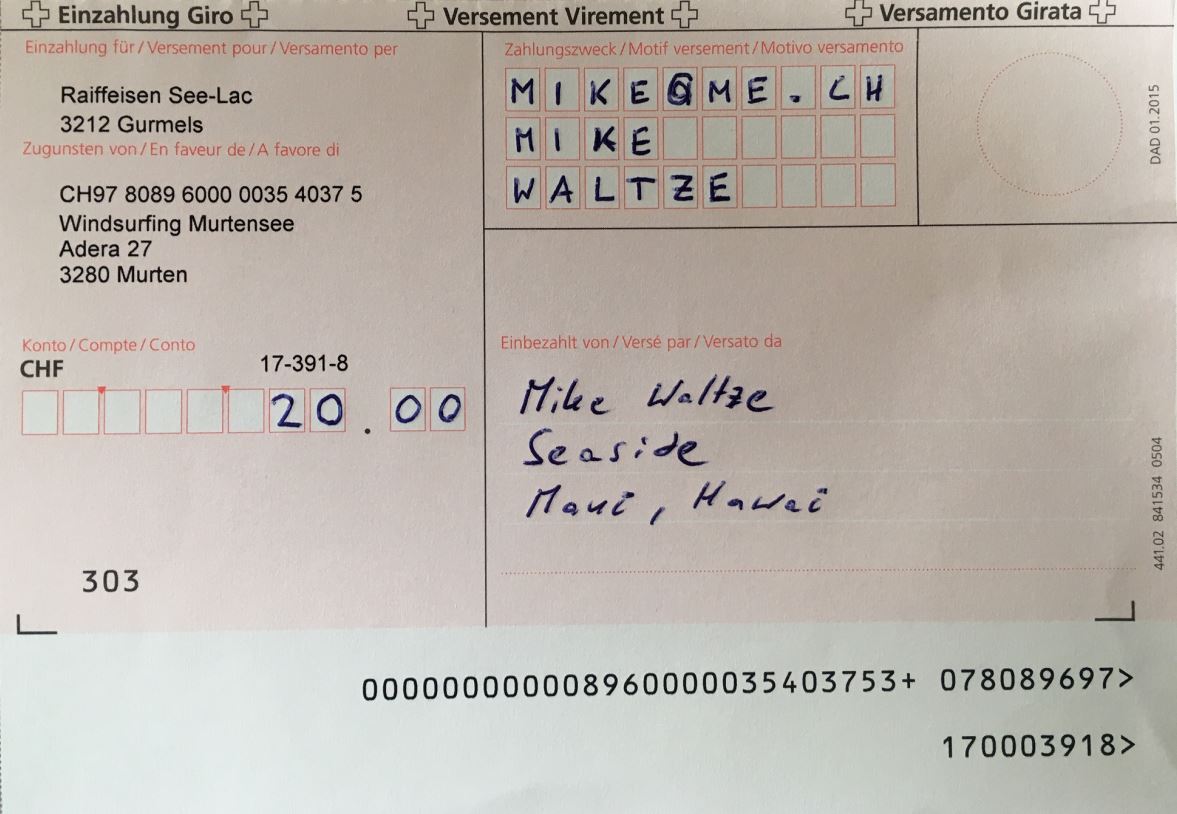 Bitte Deine E-Mail Adresse und Deinen Namen im Feld "Zahlungszweck" angeben. Wir kommunizieren alles per E-Mail.